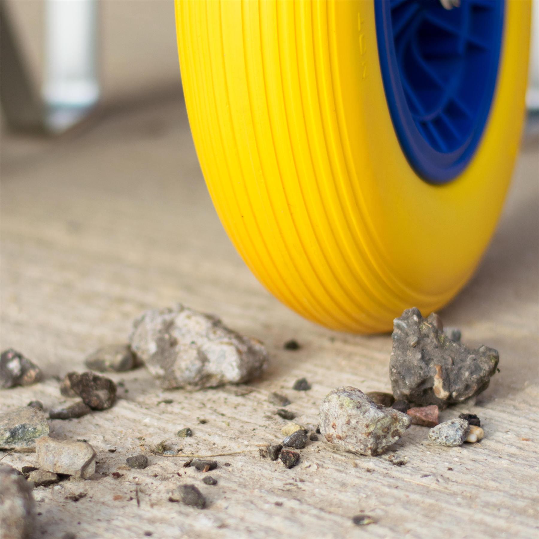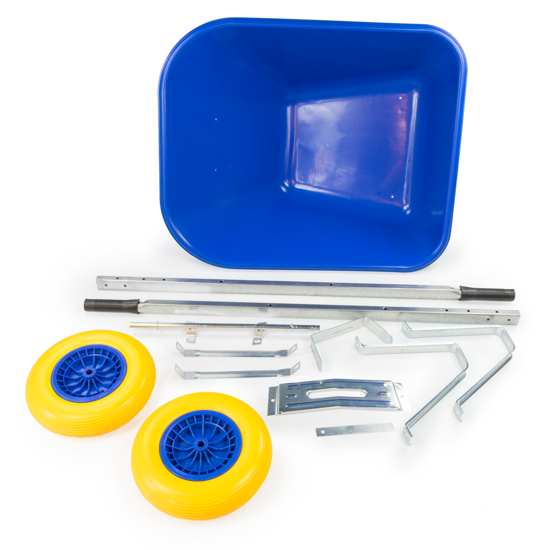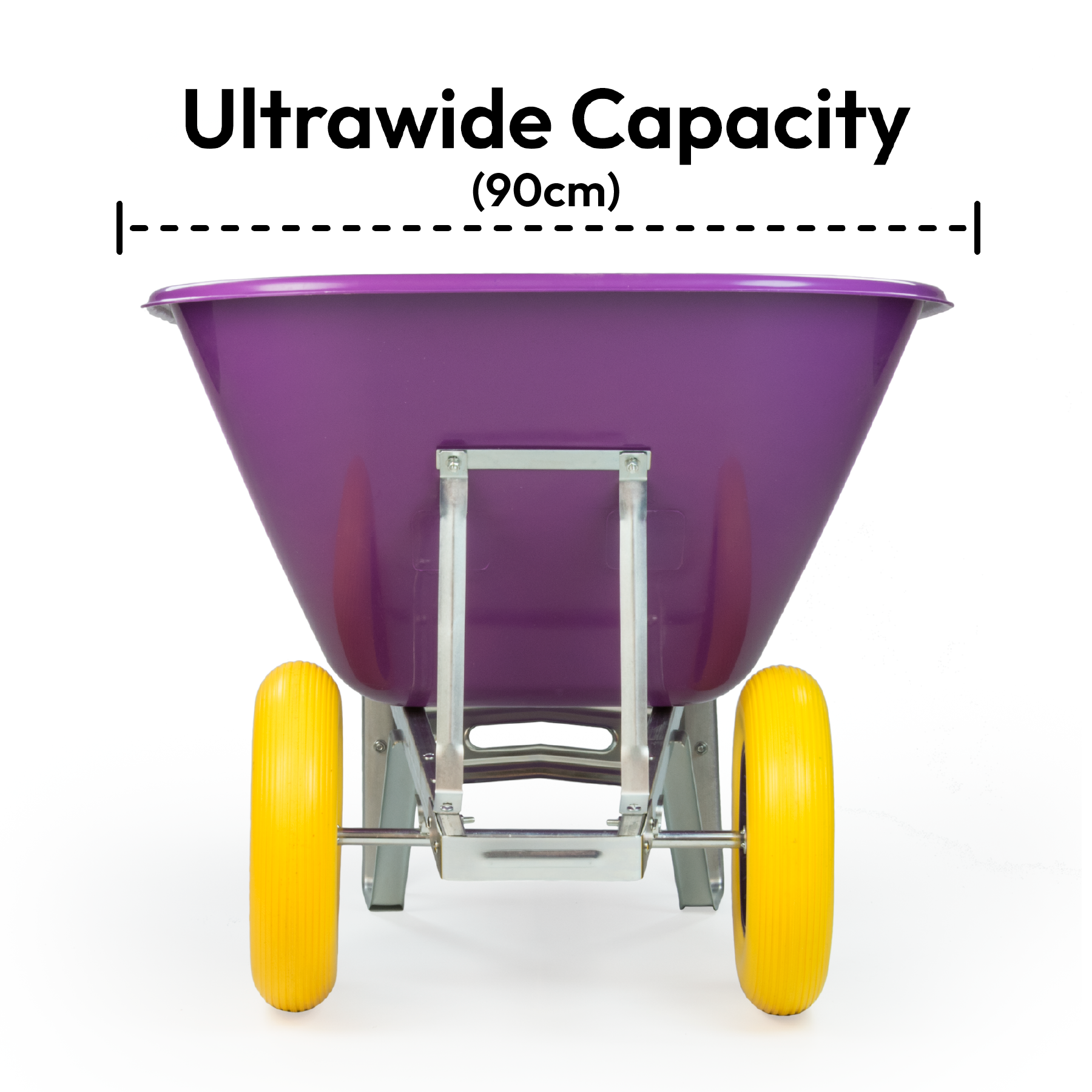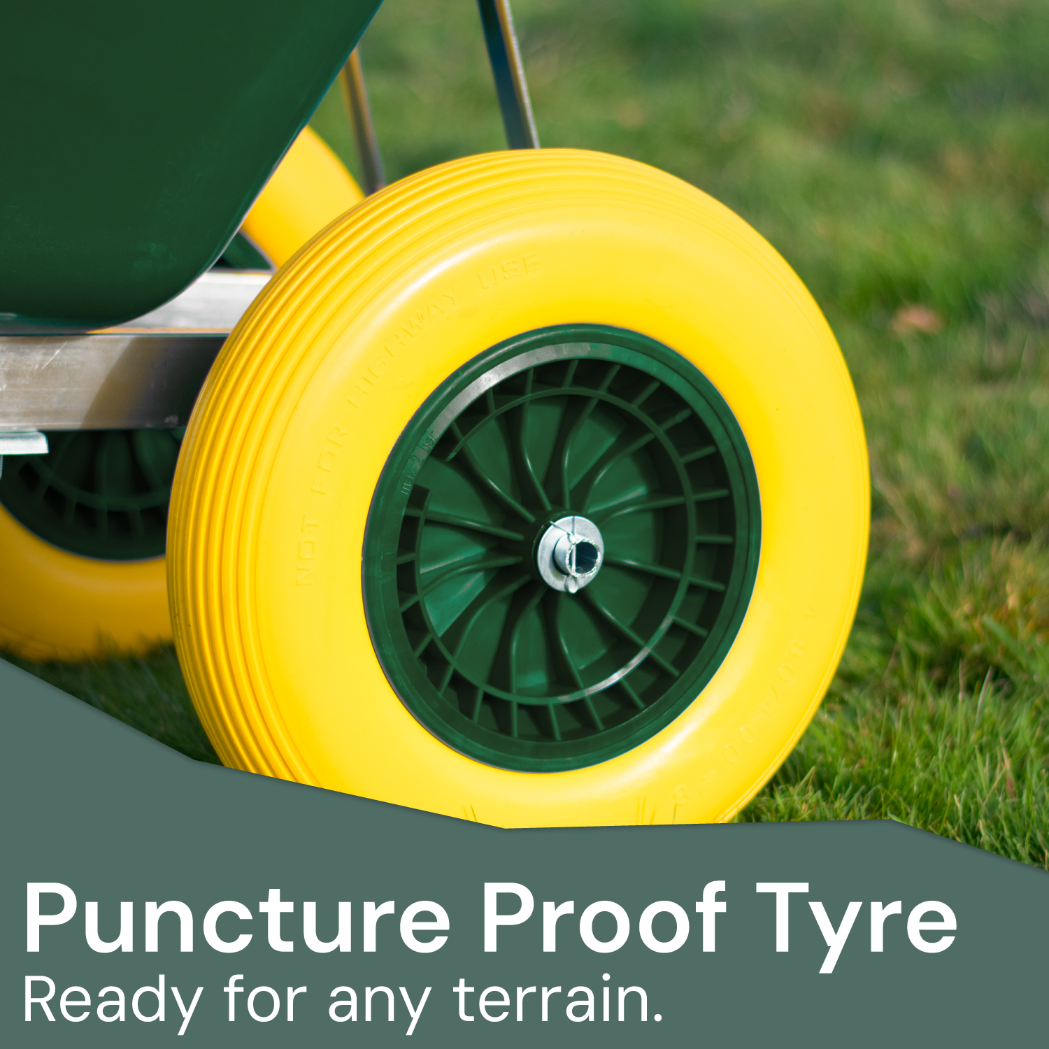 Each Wheelbarrow has 2 puncture proof durable tyres that, unlike single wheel designs, creates greater stability when in use. The front end has the security of 2 solid puncture proof wheels underneath and will ensure even heavy loads can be transported safely without becoming unbalanced or tipping over.